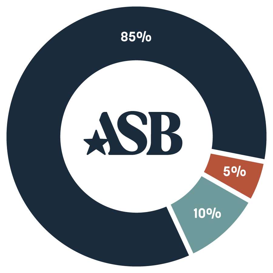 Legacy Navy is the foundation of the ASB brand and should be the dominant color in most communications. Spark Teal and Ember Clay serve as accent colors and should be used sparingly to highlight key elements.